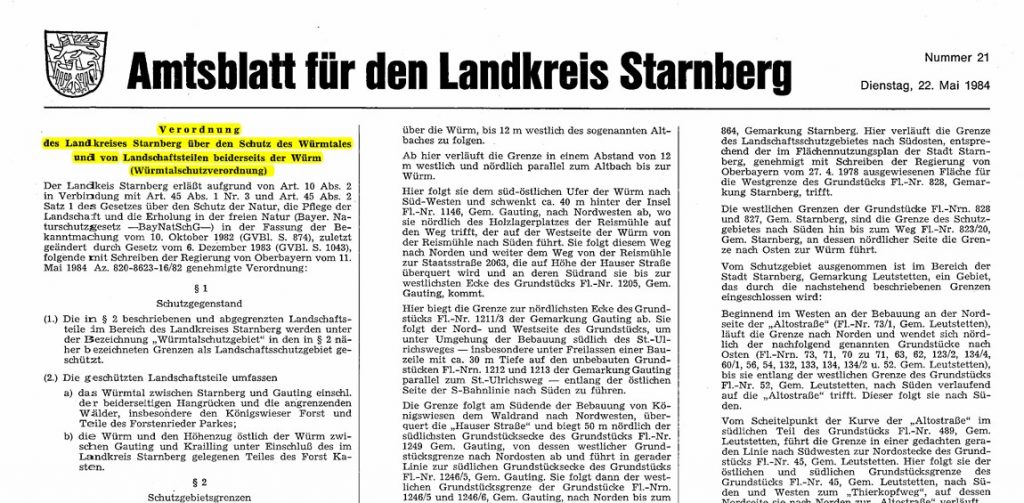 Die Würmtal-Schutzverordnung wurde bereits 1984 erlassen. Es lohnt sich, einen Blick hineinzuwerfen.