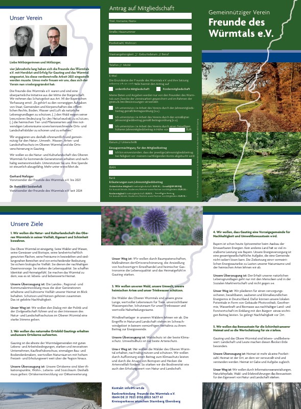 Freunde des Würmtals e.V. – Flyer Wer wir sind. Warum es uns geht. Wofür wir uns engagieren. Wie man Mitglied des Vereins werden und uns unterstützen kann.